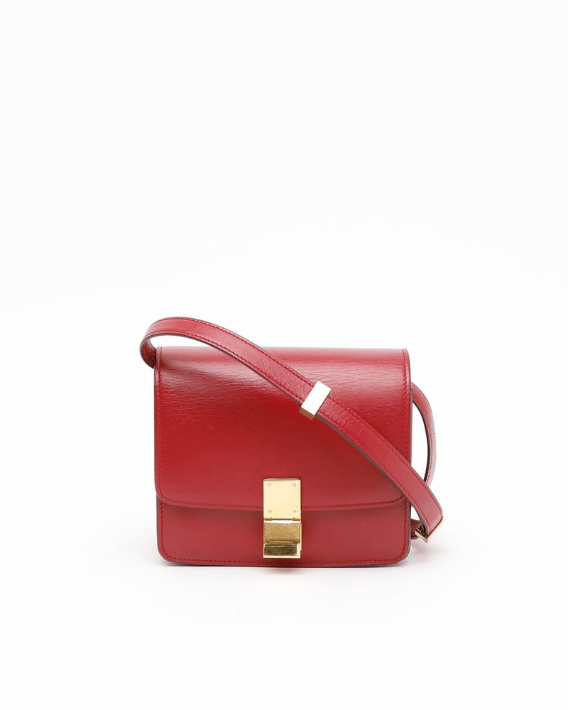 - Flat leather crossbody strap