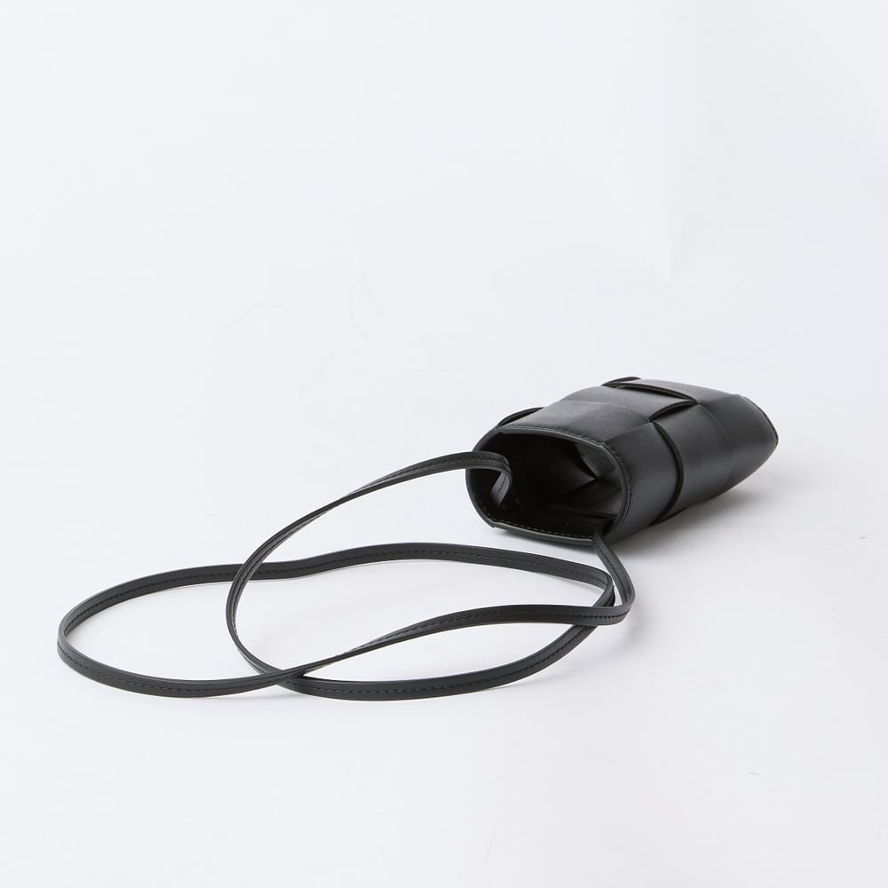 • Black Intrecciato weaved leather