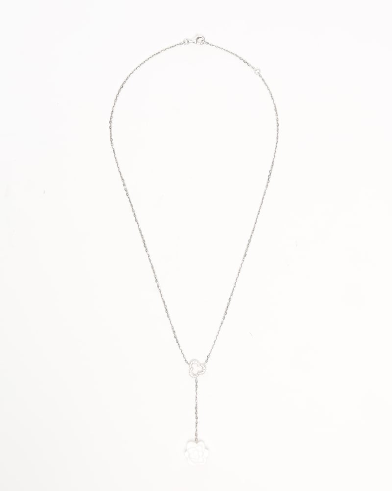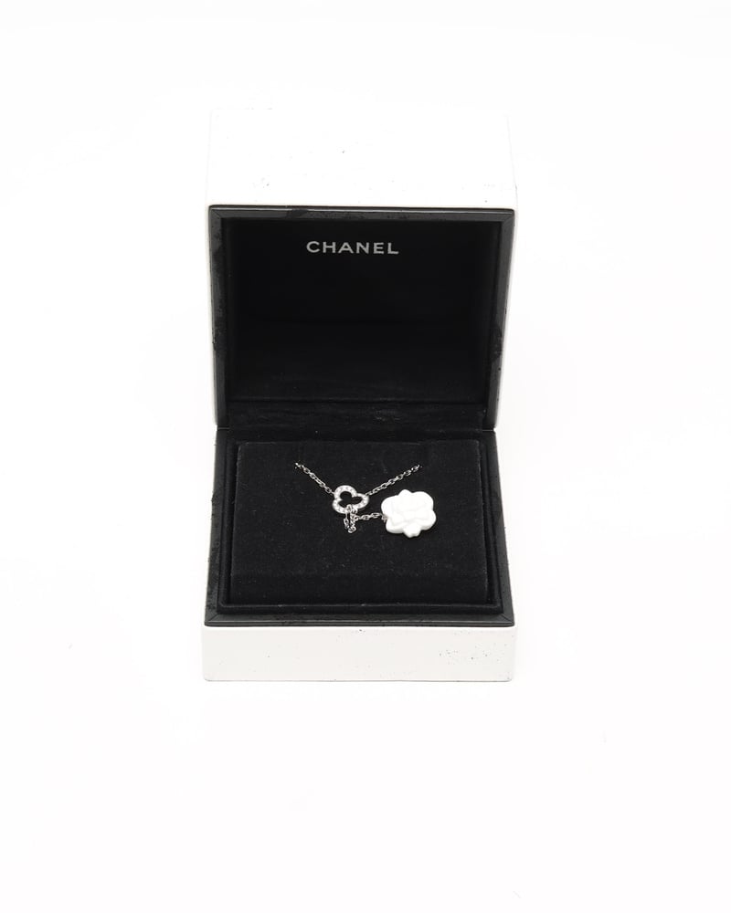 - Chainlink necklace with diamond pendant and white camellia pendant