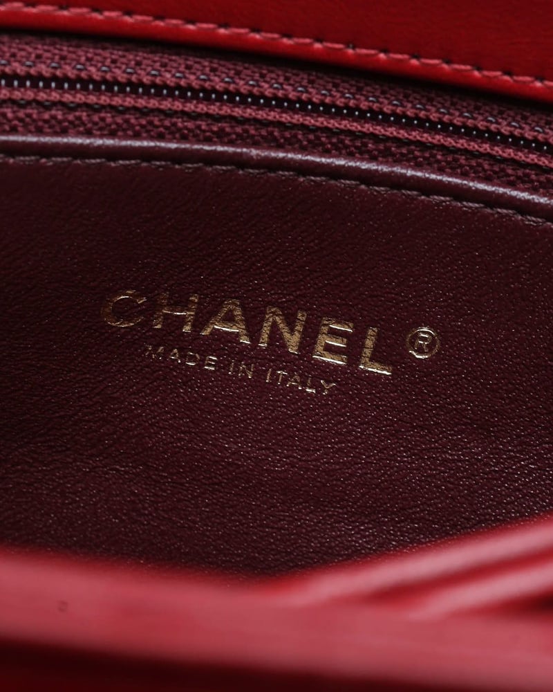 - Red quilted leather