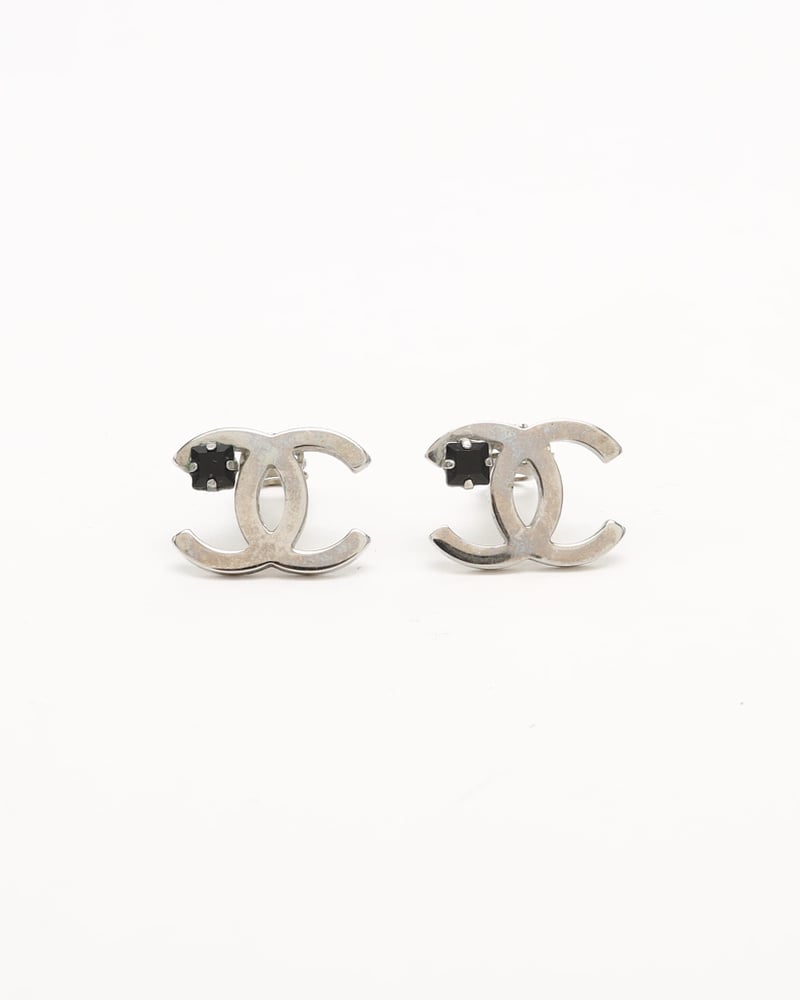 - Clips-örhängen med CC-logotyp och svarta stenar