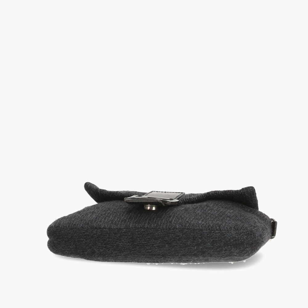 - Marinblå ull med svarta läderdetaljer